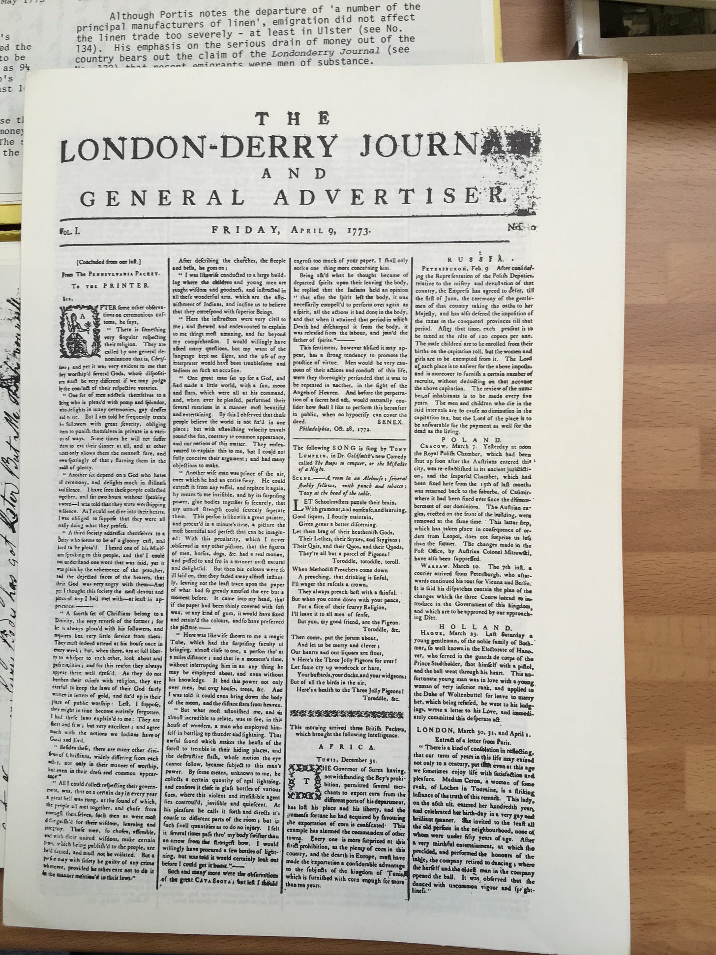 The London-Derry Journal, April 1773.